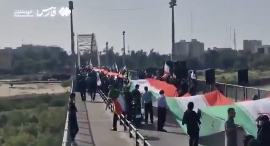Videos circulating online appear to show, in anticipation of a possible US–Israeli attack, Iranian authorities have ordered residents in Ahwaz to gather at locations such as the White Bridge and other civilian sites.