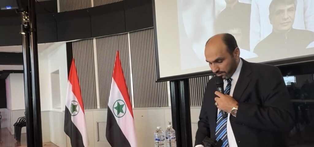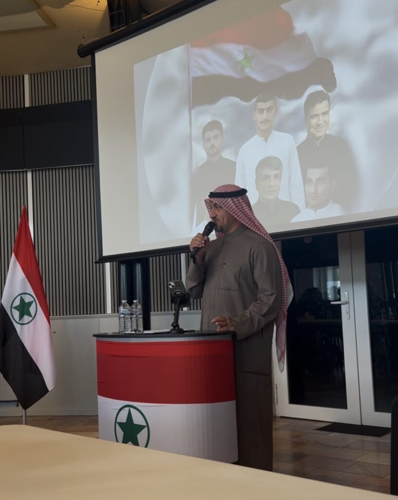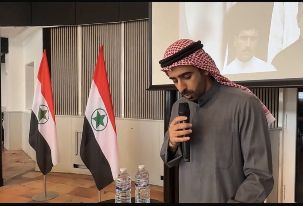 The ceremony opened with a welcoming address by Mr. Saad Al-Kaabi, the master of ceremonies. The event began with the Ahwazi national anthem, followed by a moment of silence and the recitation of Surah Al-Fatiha in honor of the Ahwazi and Arab martyrs.