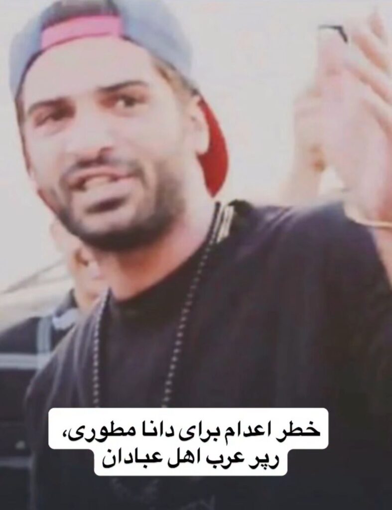 Dana Matouri, a 26-year-old Arab rapper from Abadan, is reportedly at serious risk of execution after being arrested during the January 2026 protests (Dey 1404).