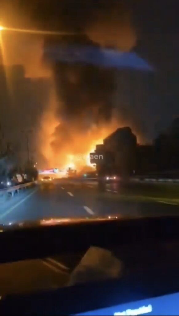 An image captures the moment of the US and Israeli airstrikes carried out last night on the Iranian Space Research Institute in Tehran. The strikes reportedly targeted facilities linked to Iran’s aerospace and satellite research programs, as explosions and smoke were seen rising from the site.